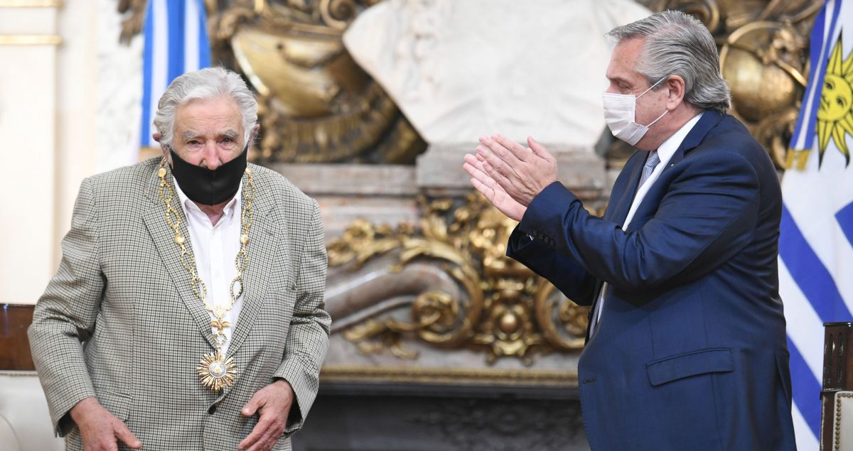 El mandatario peronista dijo que desde que llegó al poder, en 2019 —con la expresidenta Cristina Fernández (2007-2015) como vicepresidenta—, consideró que Argentina merecía dar "el más alto reconocimiento a un hombre inmenso que por ahí los uruguayos no se dieron cuenta pero que es un emblema en todo el mundo de lo mejor de la política, por su conducta, ética, convicciones y compromiso siempre con los más humildes".