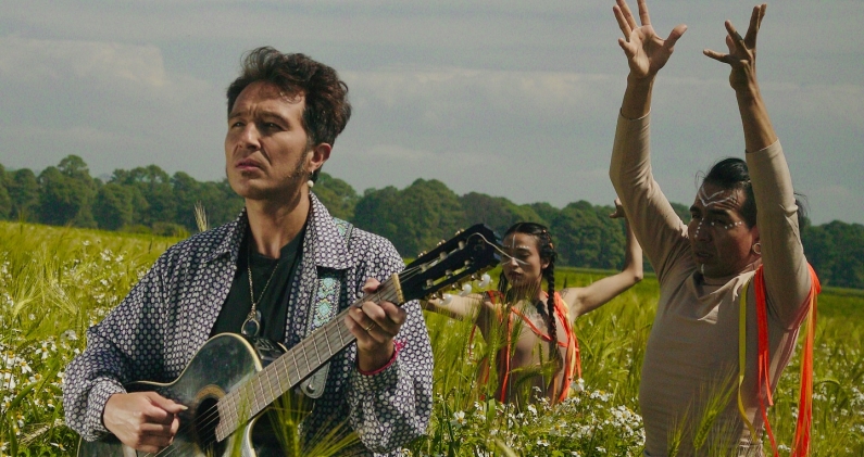 “Yo no soy tan fiestero. Nunca me fusioné tan a gusto con la fiesta en sí, ¿cachái?, vengo de un lugar donde se celebraba, pero lo mío creo que ha ido por otro lado”, dice el guitarrista que canta sus poemas en falsete, se pinta lo mismo el pelo que las uñas y se pasea cómodo por una estética que recuerda a un juglarismo de dragones, al malabar, al circo callejero, a la gitanería, a los bufones, a veces acompañado del teclado, del violín, de las “migajas donde pinta”.