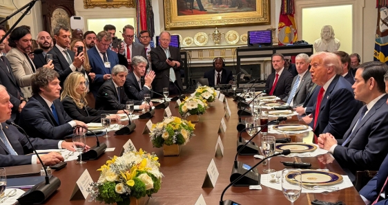 De un lado de la mesa de nogal, que cruza el Salón Oval de la Casa Blanca, están sentados Donald Trump, James David Vance, Scott Bessent, Marco Rubio y Pete Hegseth; hombres, sobre todo hombres, que integran el séquito de decisiones del presidente autopercibido monarca de Estados Unidos. El otro lado de la mesa larga lo ocupa una versión criolla de la armada Brancaleone arribada desde Argentina: con Javier Wolverine Milei en el centro, secundado por Luis Toto Caputo -el ministro de Economía postulado para el Guiness-, la filósofa en seguridad Patricia Bullrich, el futuro excanciller Werthein y, a un costado, como un rayo blanco, eléctrico, con el pelo imitando al color de la paja secándose al sol, la mujer que comparte apellido, infancia y secretos con el presidente Milei: su única hermana, dos años y medio menor, Karina.